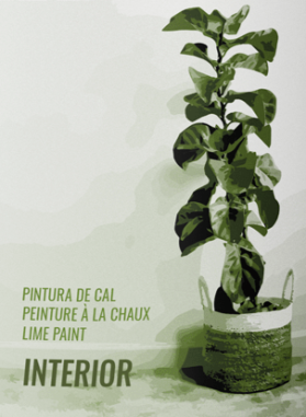 pintura de cal de interior, transpirable, reguladora de la humedad, purifica el ambiente. Libre de aditivos orgánicos tóxicos.